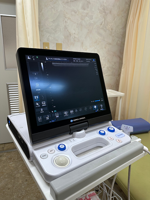 超音波検査は体の表面に超音波プローブ(探触子たんしょくし:超音波の送受信をする器械)をあて、体内の臓器からはね返ってくる超音波を画像として映し出します。超音波が伝わりやすくなるように、体の表面に検査用のゼリーを塗ってから超音波プローブをあてます。超音波検査は、痛みや放射線による被ばくの心配がなく、体への負担が少ない検査です。そのため、妊婦や高齢者も受けることができます。
